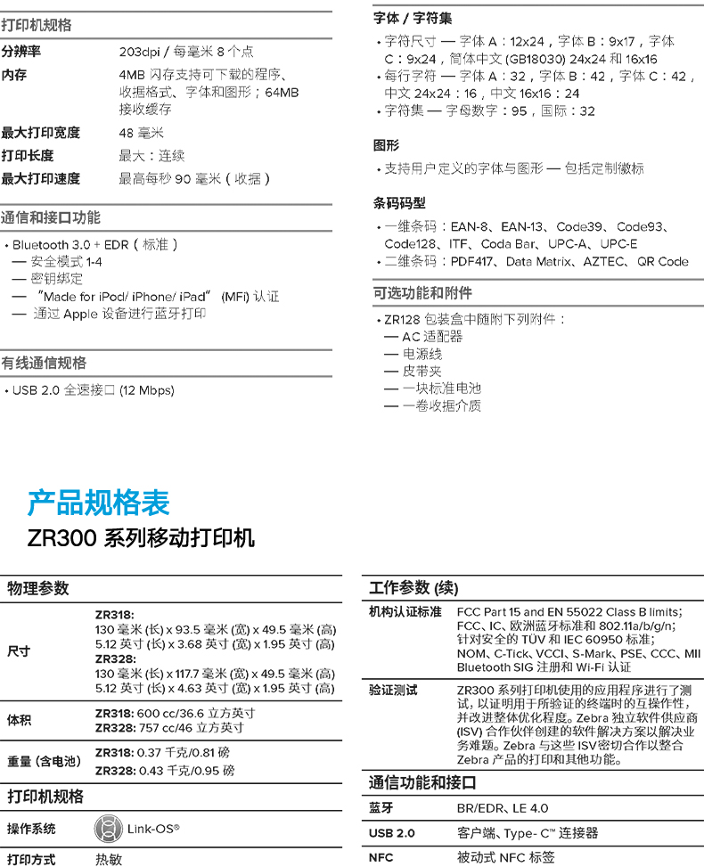 ZEBRA 斑马蓝牙便携打印机 无线条码标签打印机 ZR328 蓝牙WIFI版 (72mm宽)